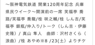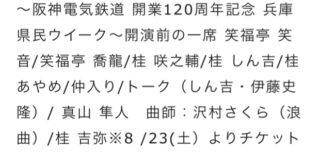 出演者 | 11:00開演 / 15:00開演 の2回公演 桂あやめ、桂三ノ助、桂あおば トークゲスト 楠木新(作家、シン・カイチマン) 西島陽子(新開地ツアーガイド) 「落語と新開地の良さを知ってもらいたい!」 そんなイベントです。ホールは兵庫区役所2階です。 |