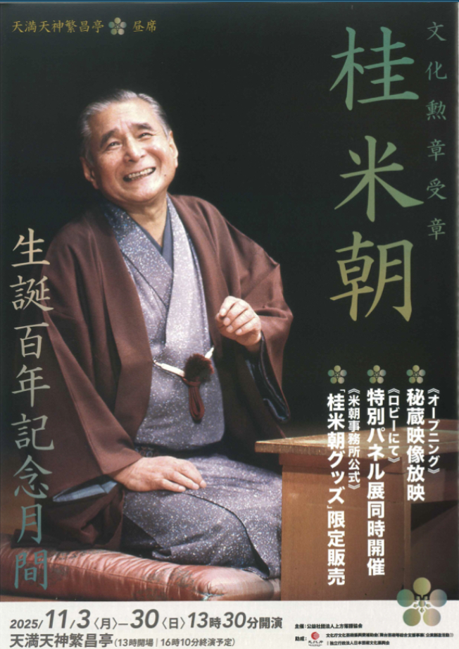 出演者 | 11月13日(木) 文化勲章受章 桂米朝 生誕百年記念月間 笑福亭喬路/月亭遊真/桂福矢/ いわみせいじ(似顔絵)/桂佐ん吉/桂あやめ ~仲入~ 桂小梅/笑福亭伯枝/チキチキジョニー(漫才) /笑福亭福笑 |