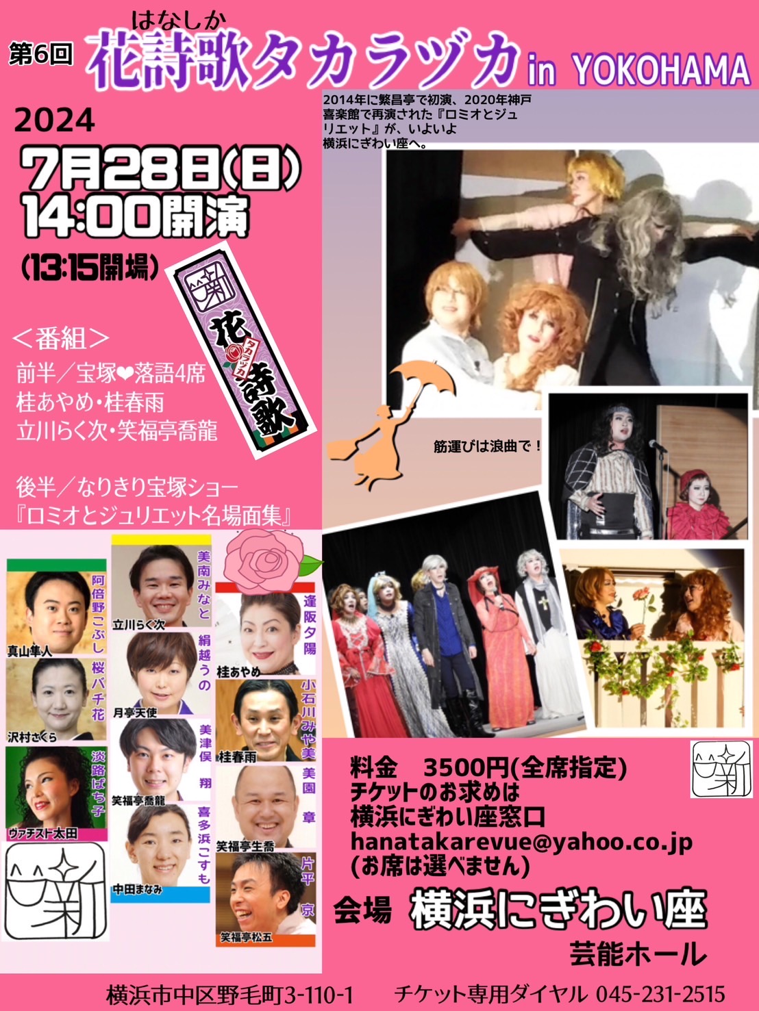 「第6回 花詩歌タカラヅカ in YOKOHAMA、ロミオとジュリエット」の配役が決定しましたので、お知らせ致します。